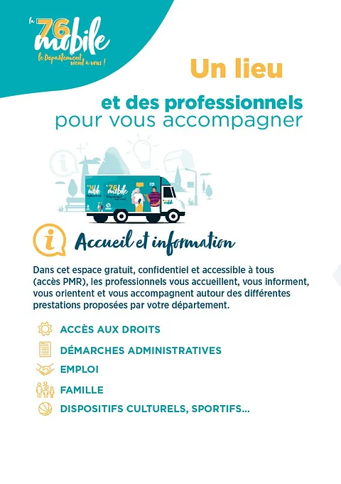 - de 9h30 à 12h sur le parking de la mairie : Besoin de conseils ou d’assistance ? Venez sans rendez-vous, plusieurs professionnelles du secteur médico-sociale vous accompagneront dans toutes vos démarches.